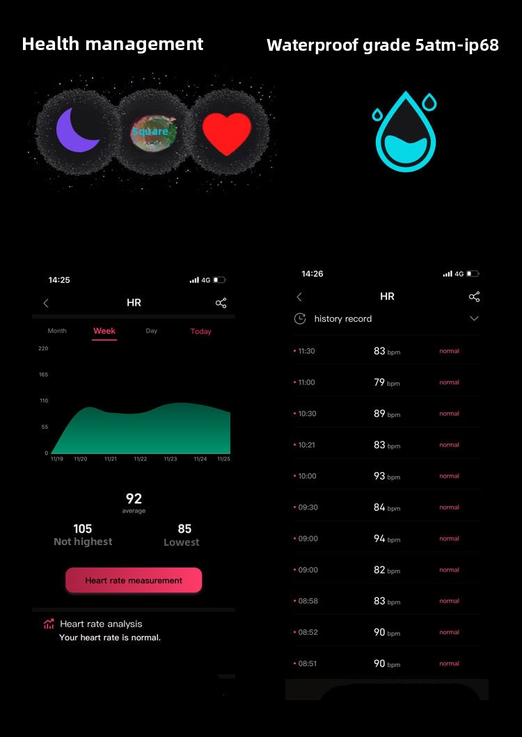 IP68 Waterproof - Fully waterproof design for swimming and daily wear